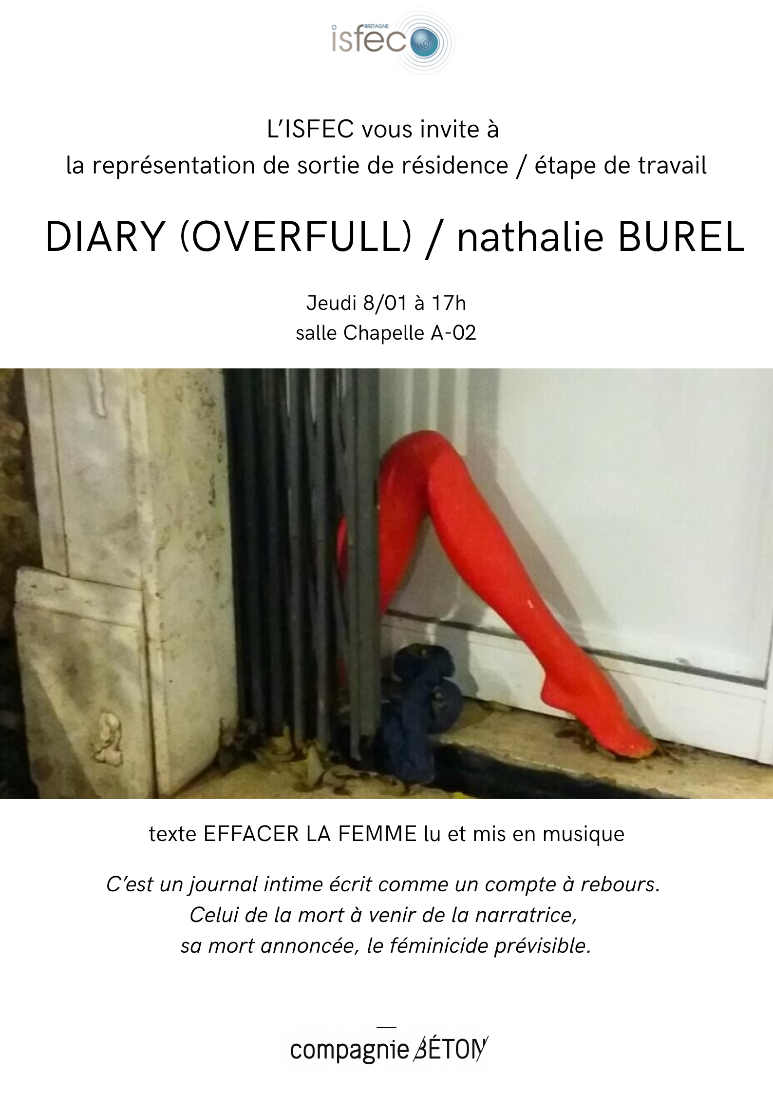 Sortie de résidence / rencontre professionnels : 30/10 à 17h au Grand Cordel, Rennes.